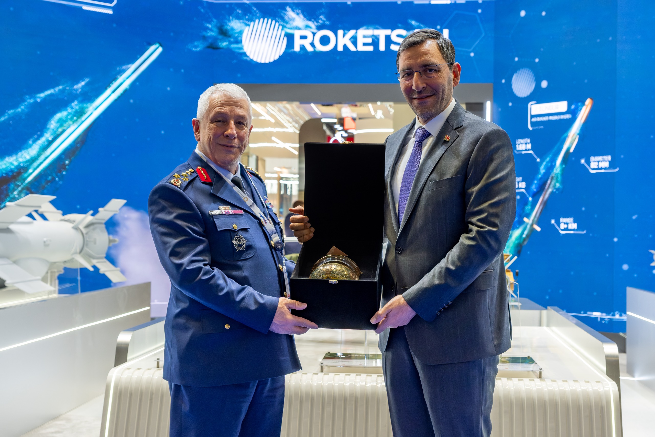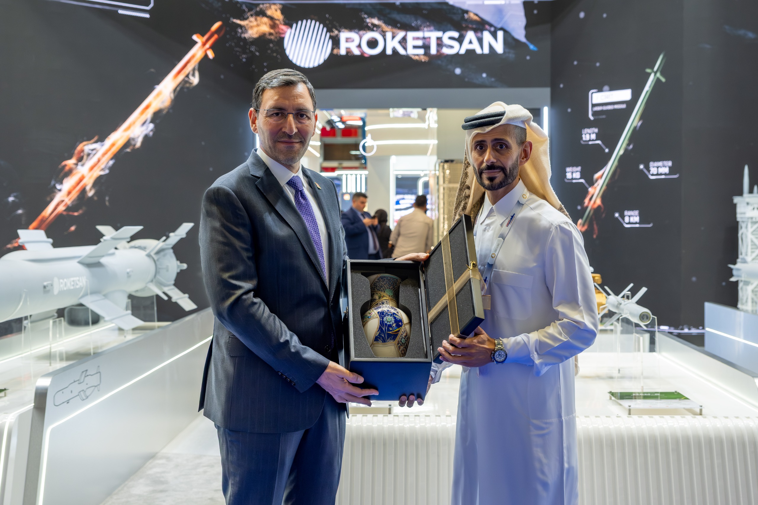 Dünya çapından üst düzey liderler, savunma bakanları, donanma komutanları, hükümet yetkilileri ve sektör yöneticilerinin katılım sağladığı fuarda, ROKETSAN; Mini Akıllı Mühimmatlarından MAM-C, MAM-L ve MAM-T’yi, tanksavar sistemlerinden CİRİT Lazer Güdümlü Füze, KARAOK Kısa Menzilli Tanksavar Silahı, Orta Menzilli Tanksavar Silah Sistemi OMTAS, Uzun Menzilli Tanksavar Füze Sistemi LUMTAS-GM’yi, hava savunma sistemlerinden SUNGUR Hava Savunma Füze Sistemi, Yakın Hava Savunma Sistemi LEVENT, MİDLAS Milli Dikey Atım Lançer Sistemi’ni ve ÇAKIR Seyir Füzesi’ni beğeniye sunuyor. Öte yandan Taktik Füze Fırlatma Sistemi KMC ve BORA Silah Sistemi de Katar’da sergilenen ürünler arasında yer alıyor.